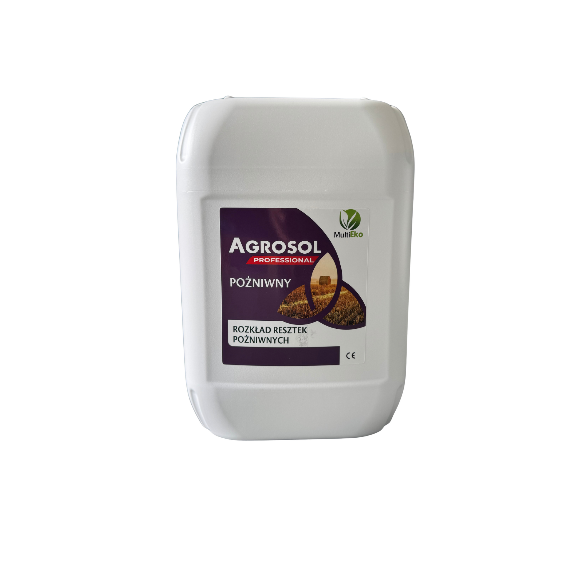 Koncentrat nawozowy organiczny pożniwnych Agrosol Pożniwny 10L wspomaga rozkład resztek pożniwnych na polu. Aktywuje oraz stymuluje bakterie celulolityczne zawarte w glebie do przyspieszania rozkładu pozostałości roślin po zbiorach. Agrosol Pożniwny to połączenie wysokiej dawki azotu, aminokwasów, węglowodanów oraz żywych kultur, pożytecznych mikroorganizmów.