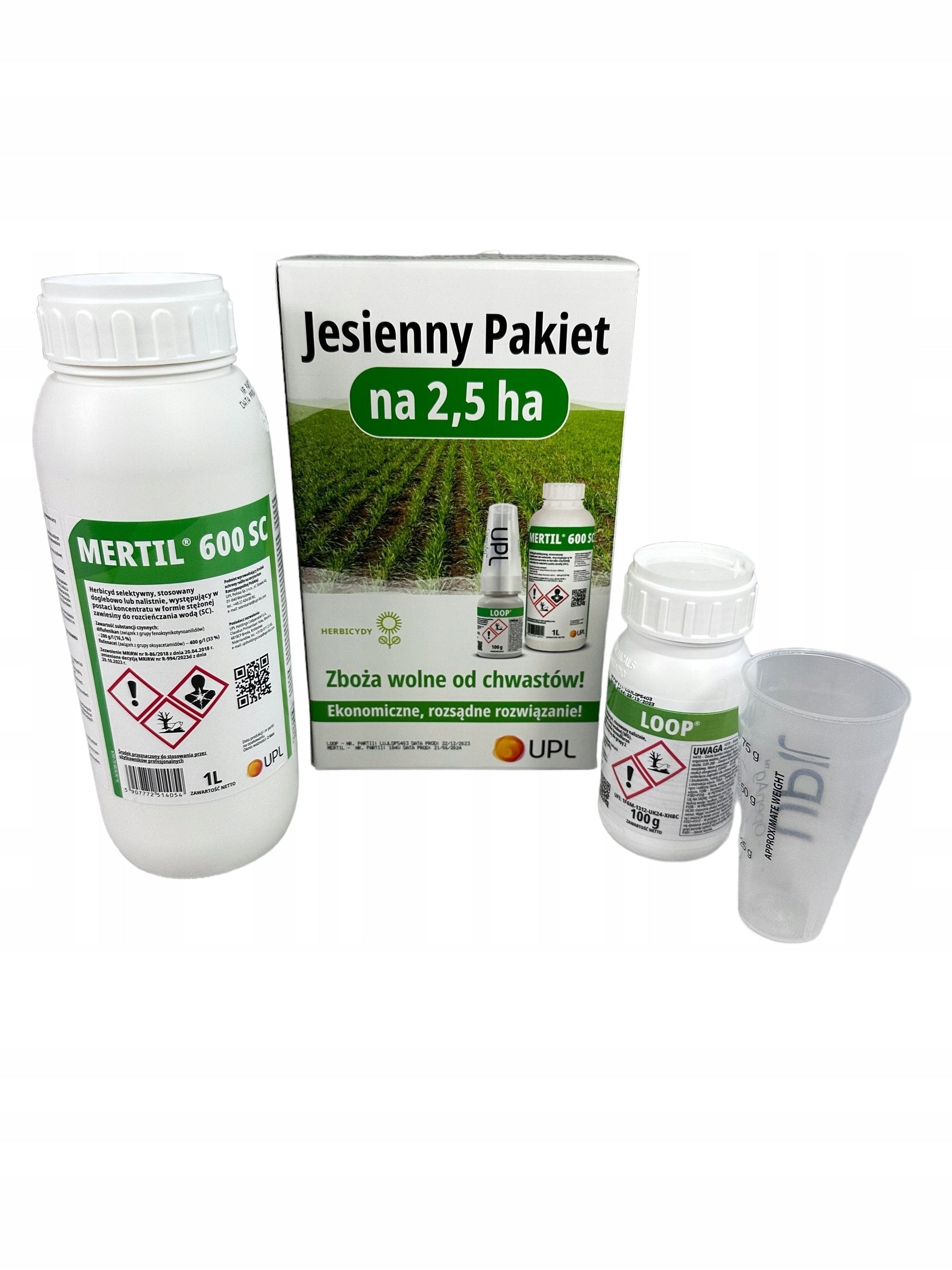 Jesienny pakiet to zestaw zawierający herbicydy selektywne na chwasty w zbożach - Mertil 600 SC oraz Loop 0,1 kg.